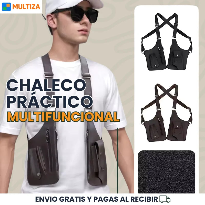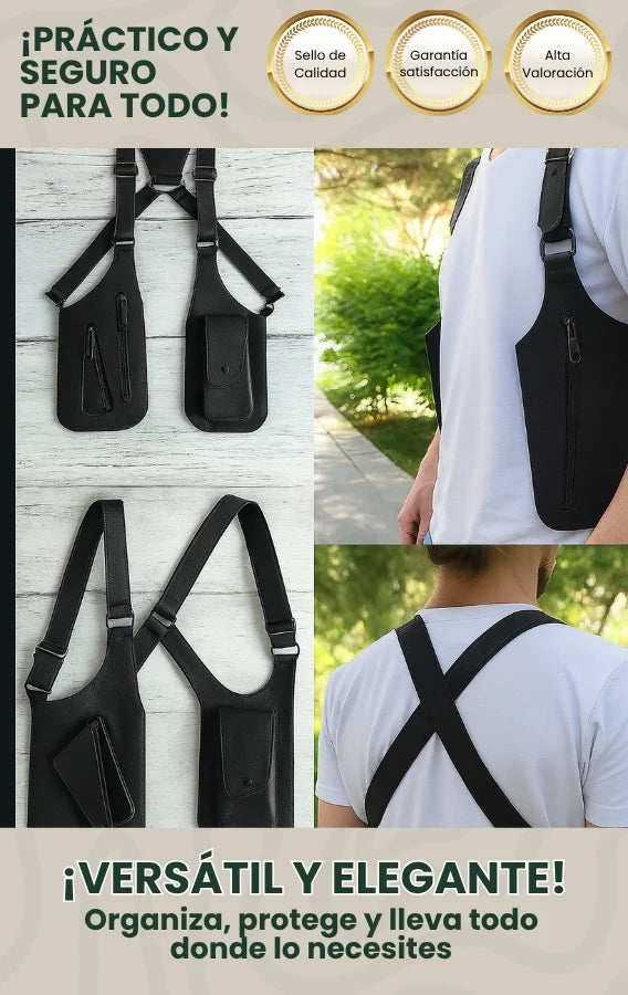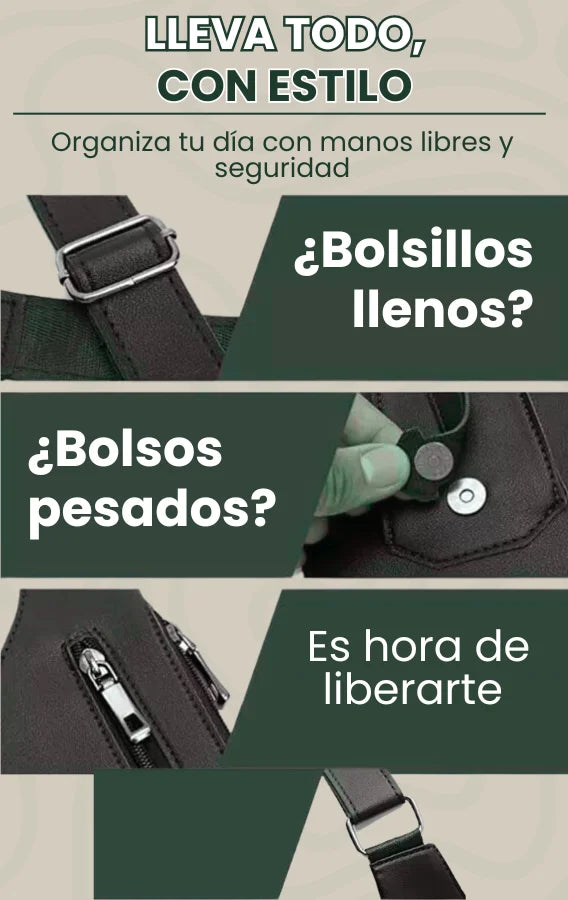 Tiene compartimentos estratégicos para celular, billetera, llaves y más.