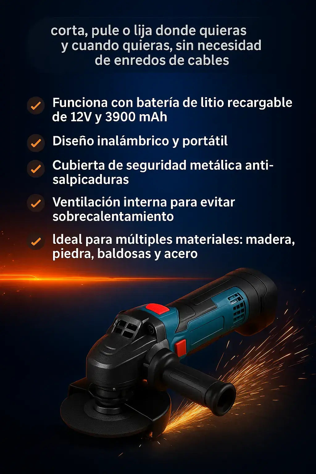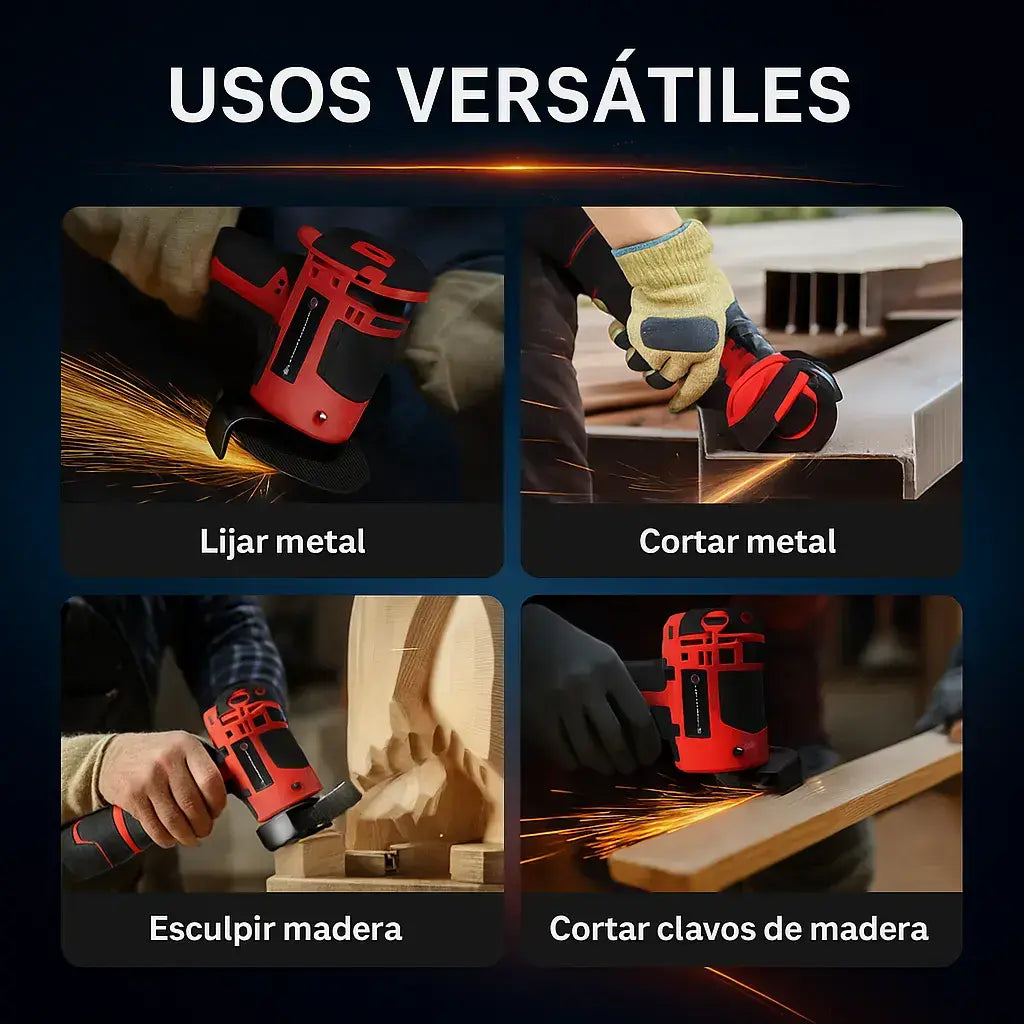 ¡Sí! Es perfecta para cortar y pulir acero, aluminio y más