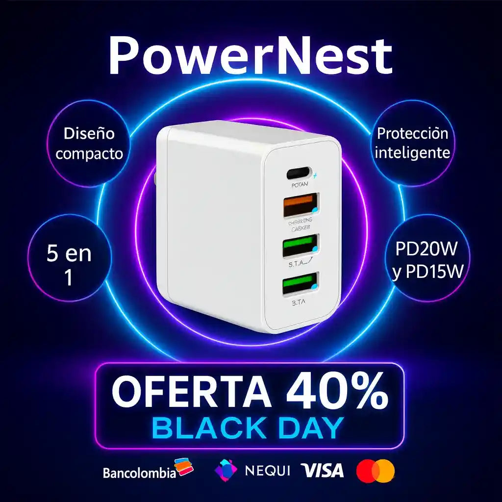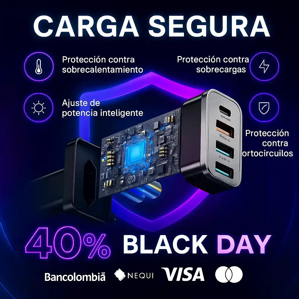 Sí, tiene potencia total de 38W distribuida con carga inteligente.