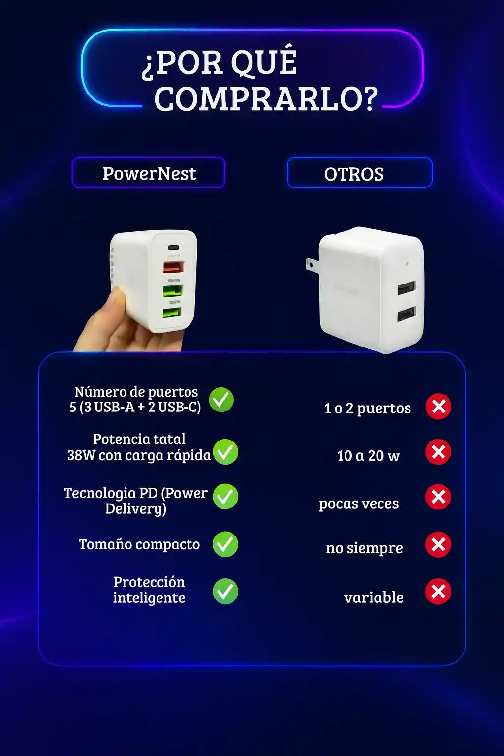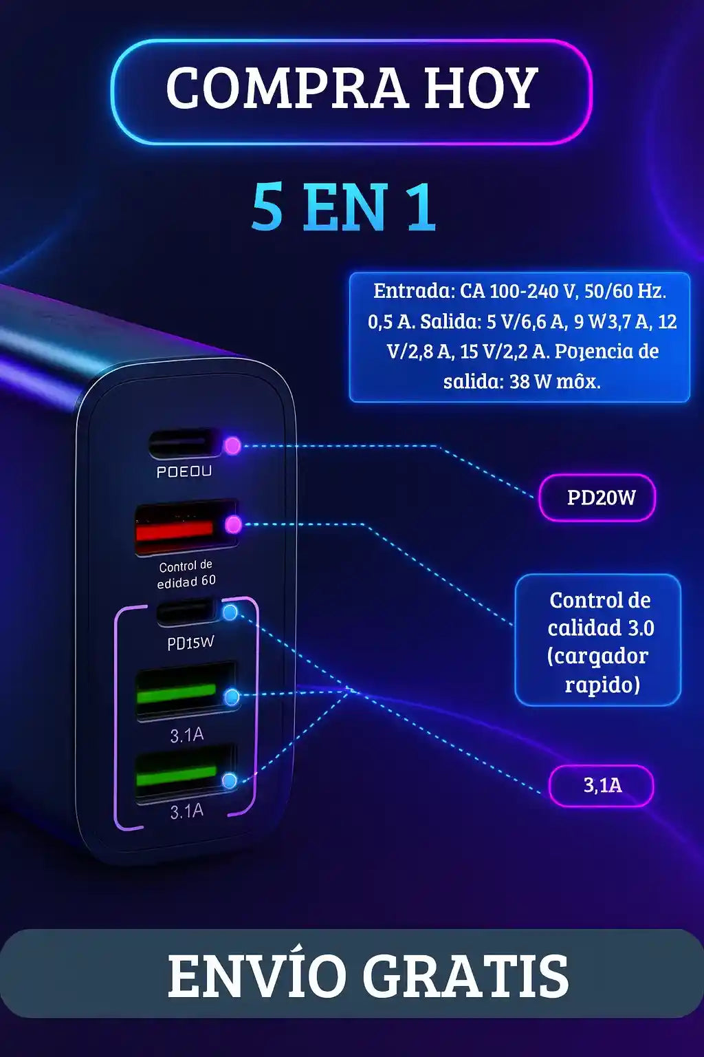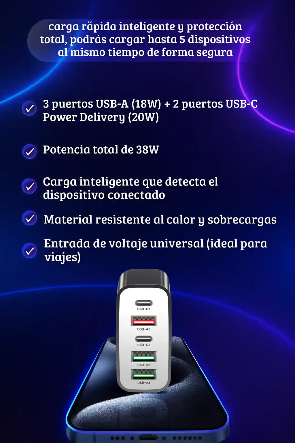 Hasta 5 dispositivos simultáneamente (3 USB-A + 2 USB-C).