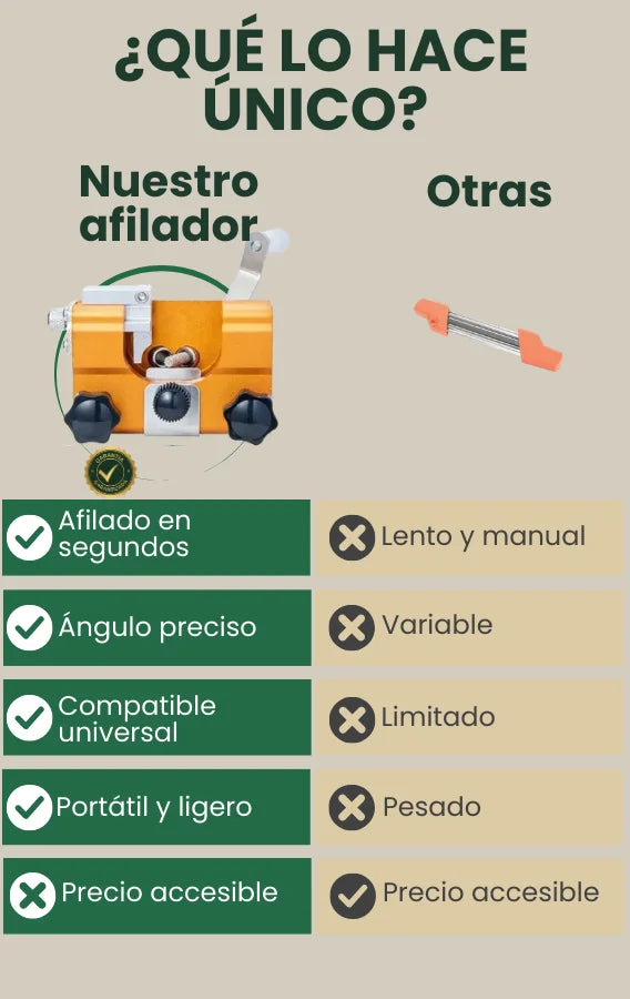 Sí, está fabricado en aleación metálica de alta calidad combinada con ABS reforzado. Esto lo hace duradero, resistente a impactos y al desgaste por uso frecuente, incluso en ambientes de trabajo exigentes como bosques o faenas de jardinería.