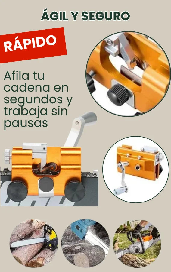 Con Sharpix™ puedes afilar cada diente en 3 a 5 segundos. Una cadena completa se puede afilar en menos de 5 minutos, mucho más rápido que los métodos tradicionales.
