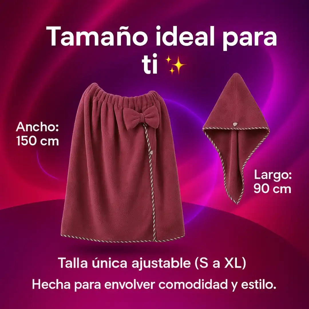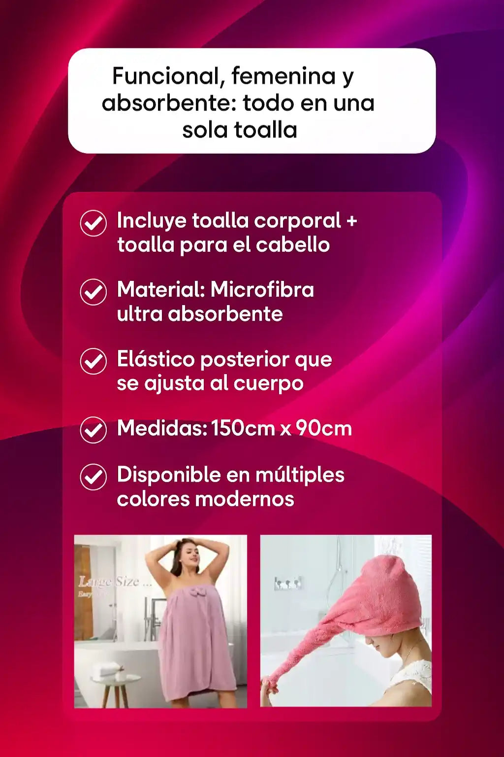 ¡Sí! El set incluye la toalla corporal y el turbante para el cabello.