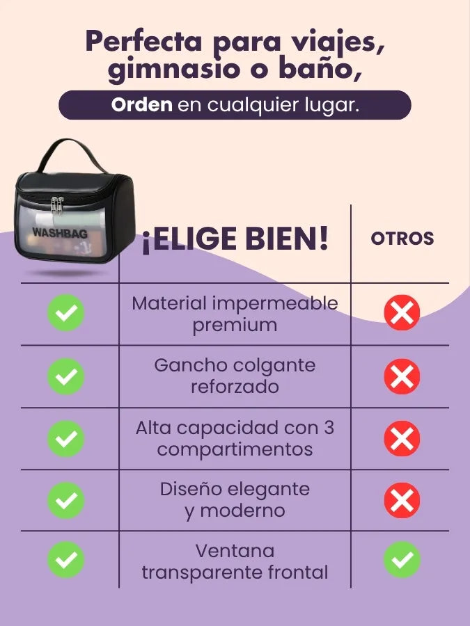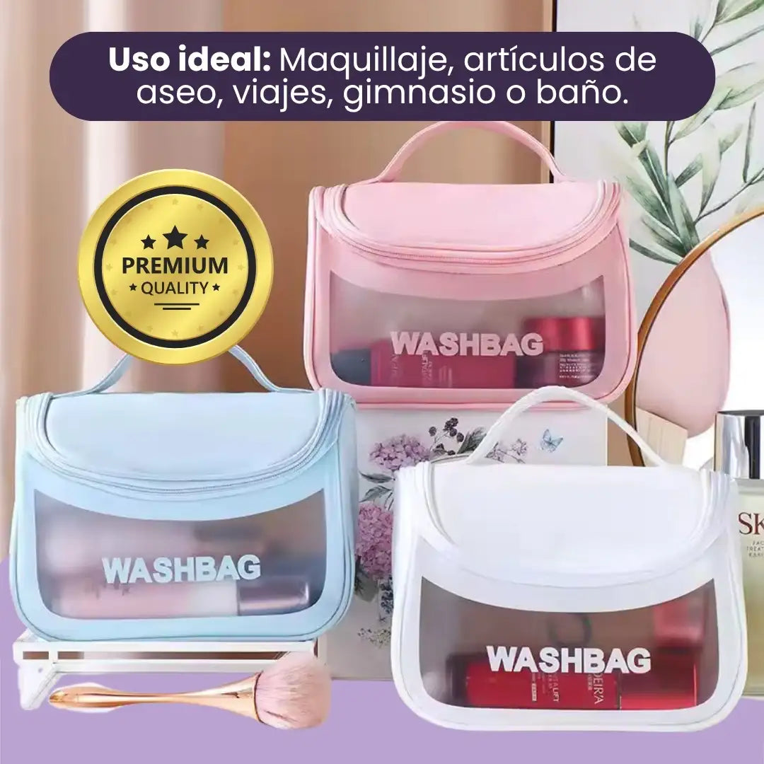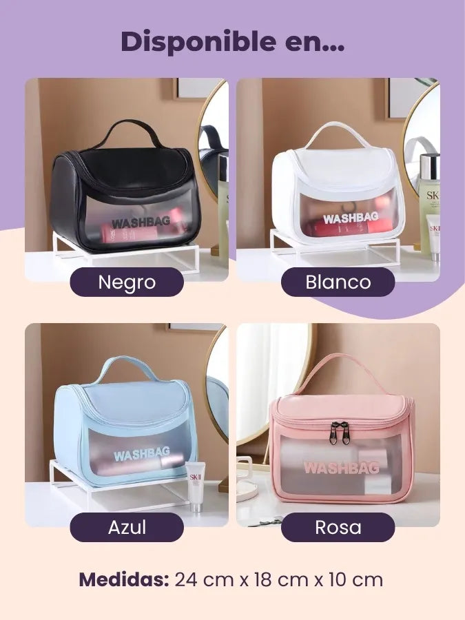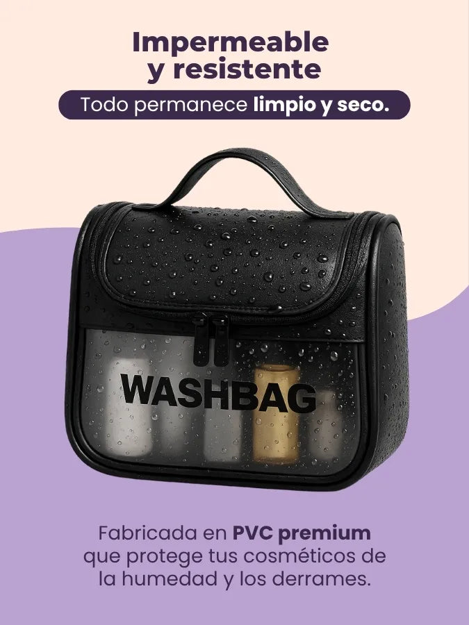 Sí, su material PVC repele el agua y mantiene tus cosméticos secos y protegidos.